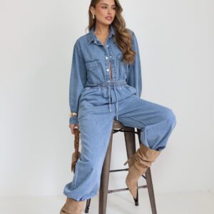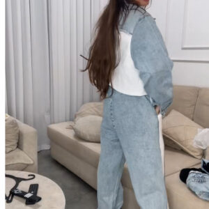 חליפה ג׳ינס ג׳קט ג׳ינס ומכנס ג׳ינס עם פוטר מאחורה