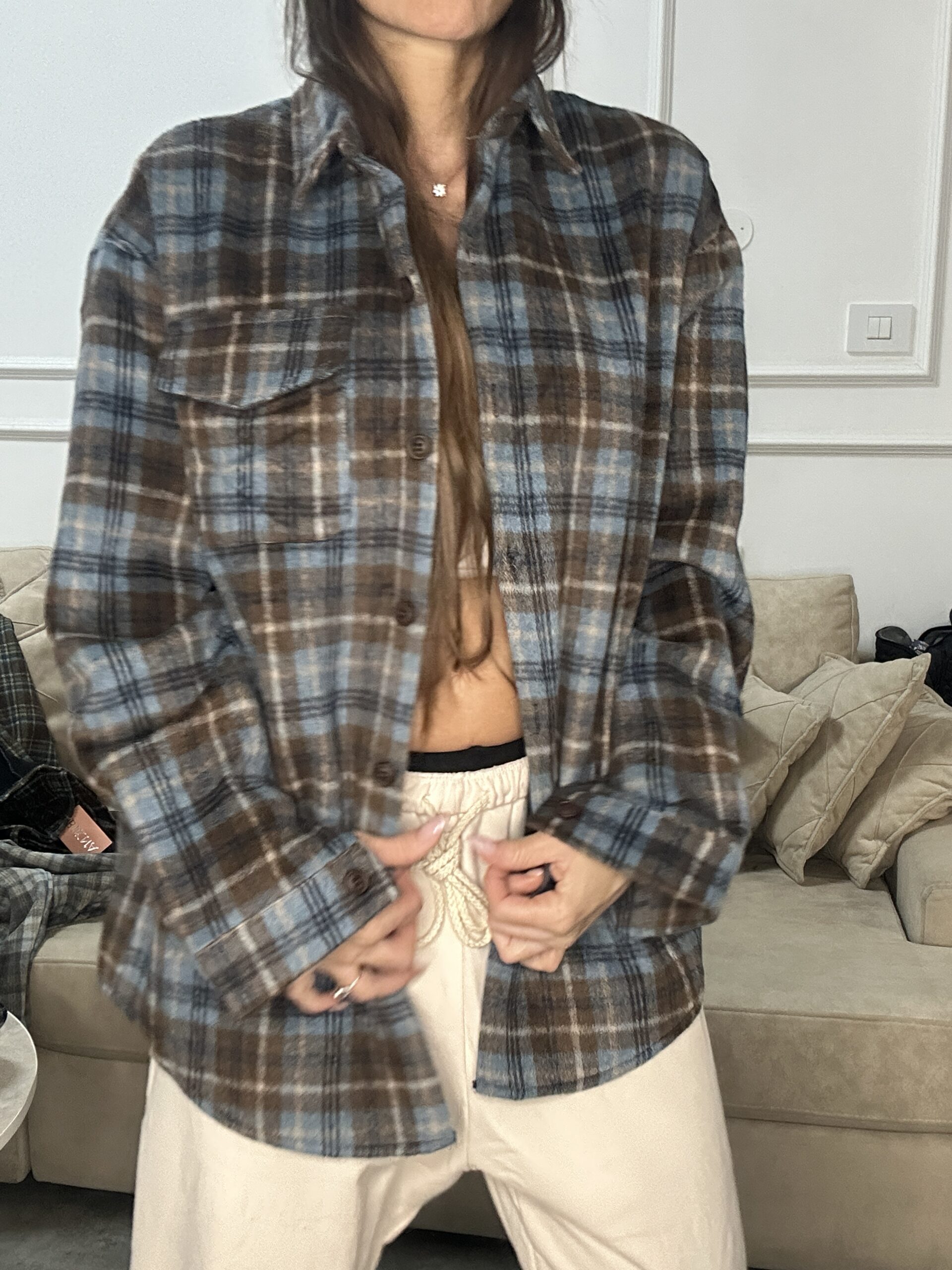 גקט חולצה משובץ עם פליז בפנים (העתק)