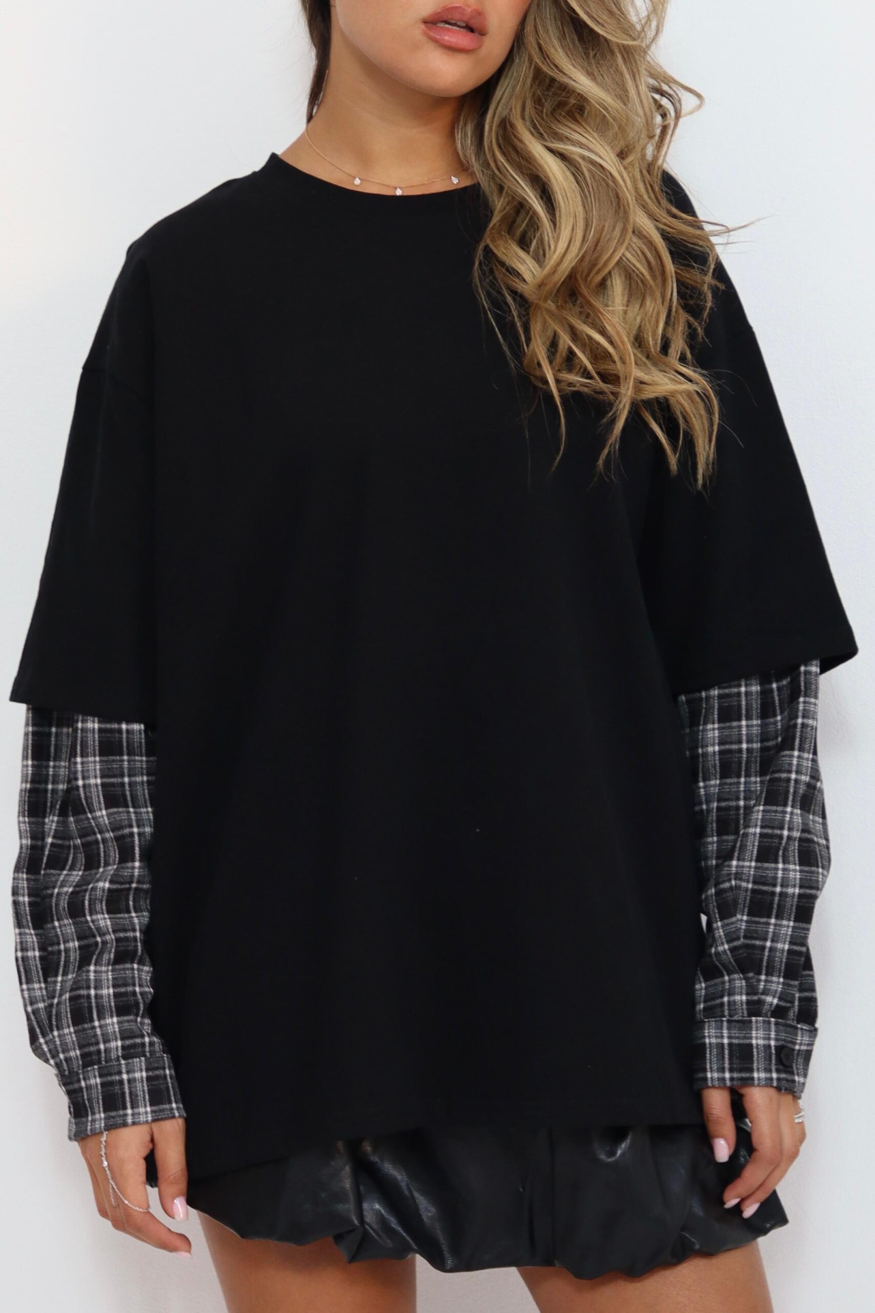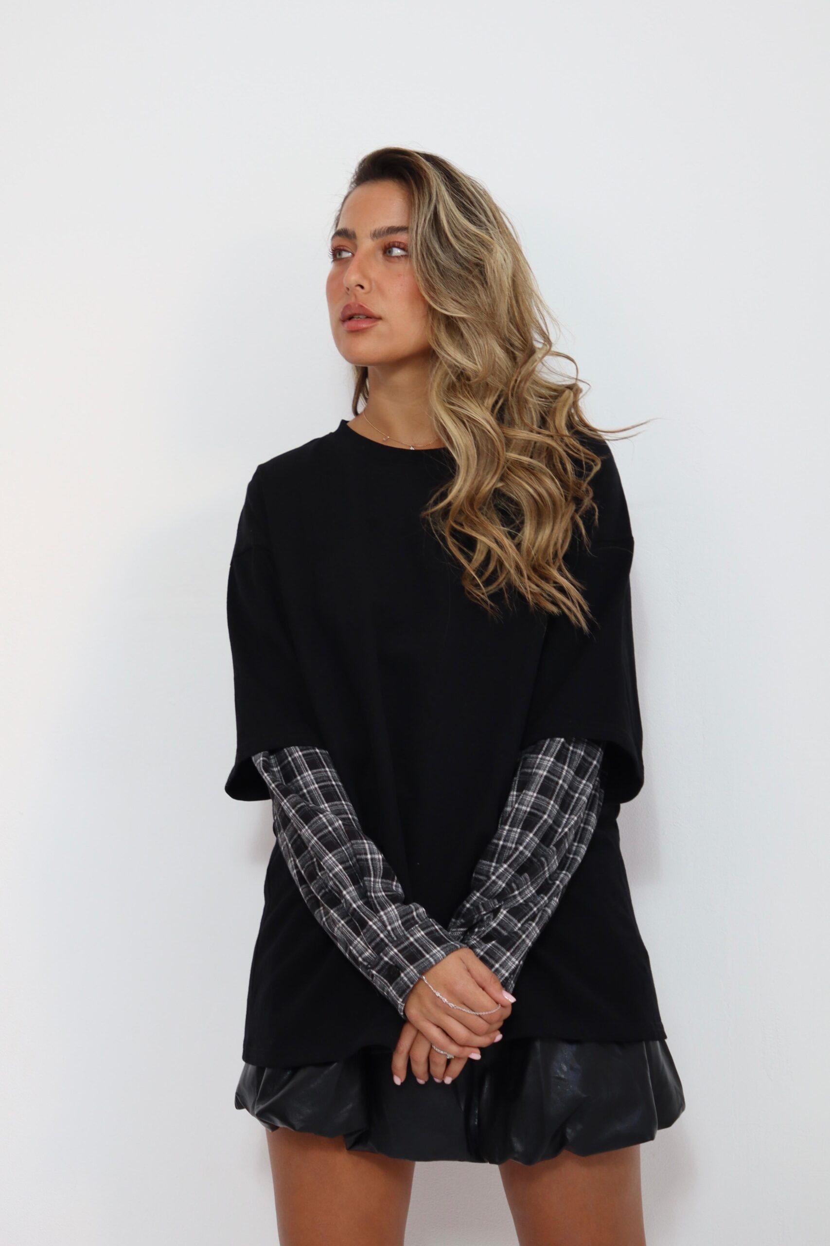 חולצה שילוב שרוול משובץ