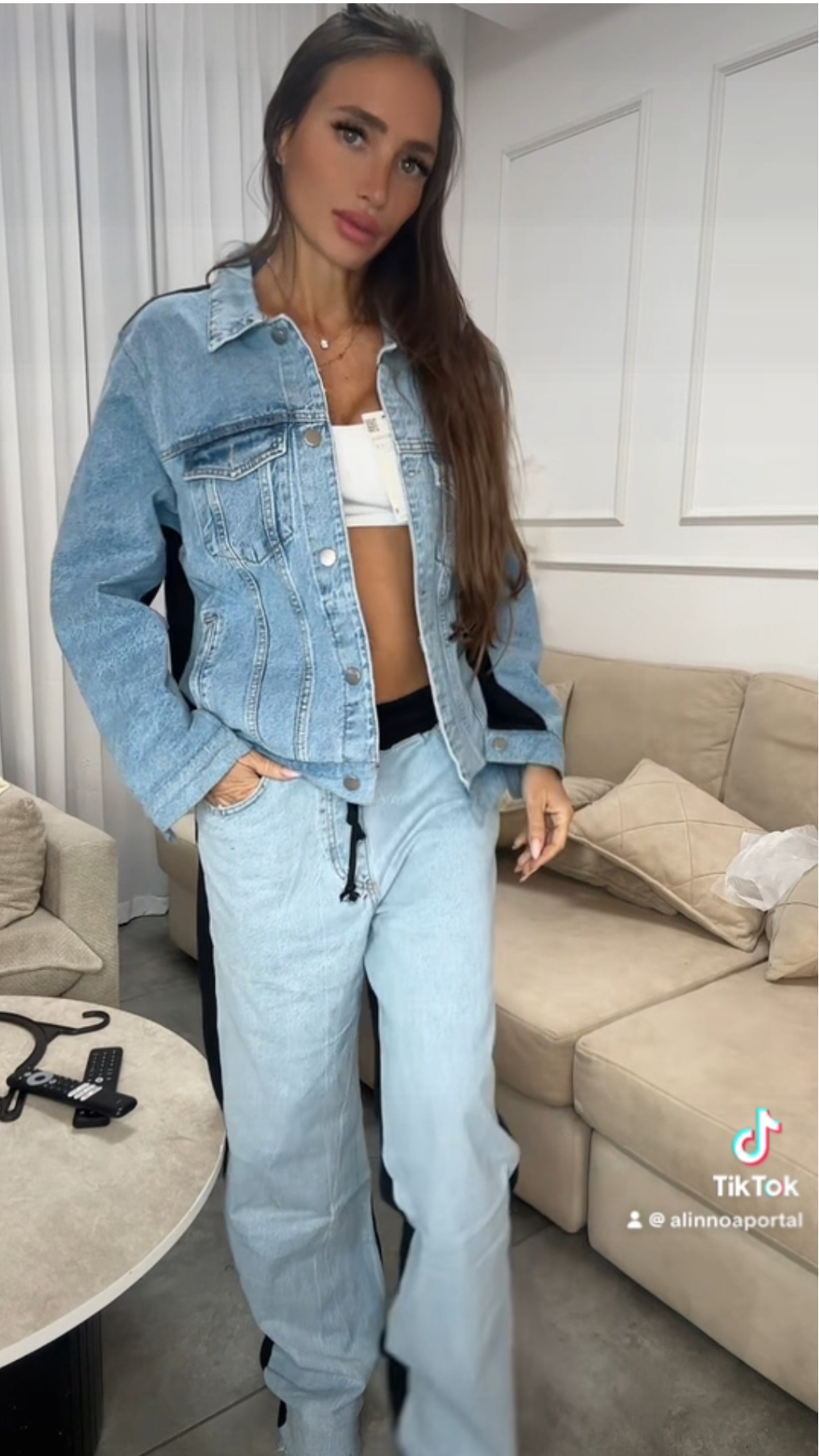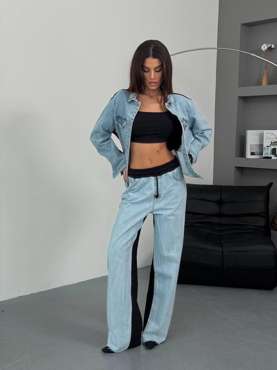 חליפה ג׳ינס ג׳קט ג׳ינס ומכנס ג׳ינס עם פוטר מאחורה