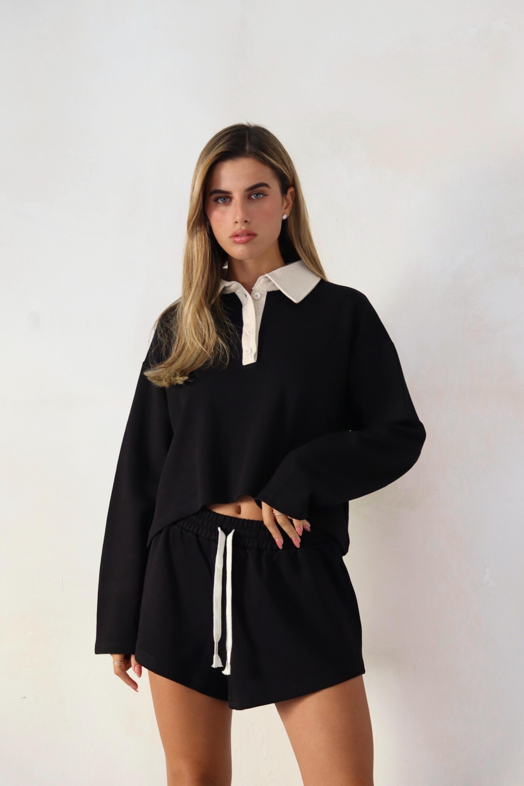 חליפה שילוב פס לבן שורט